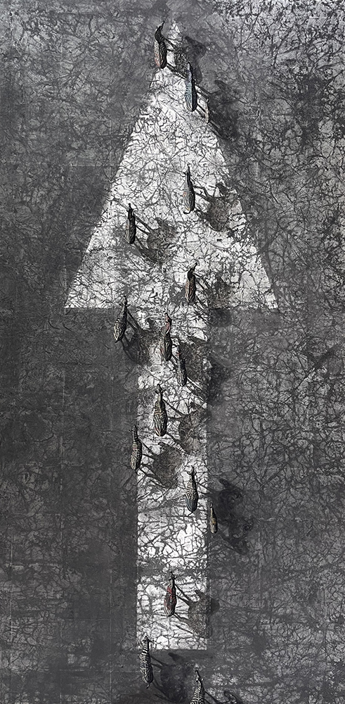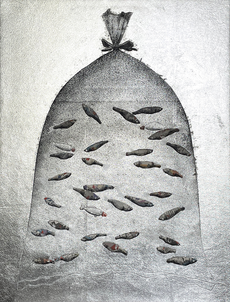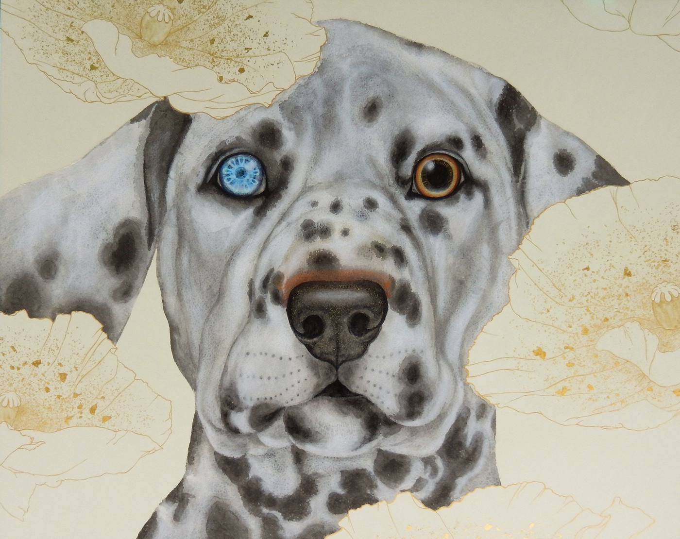 Hakuta Yoshuya received his Doctorate in Fine Art and Design from the University of Tsukuba in 2012. His mastery of Asian gouache painting brings together traditional Japanese paper, natural rock pigments, water-based inks, silver foil, and tinsel, creating works of striking delicacy and visual richness.