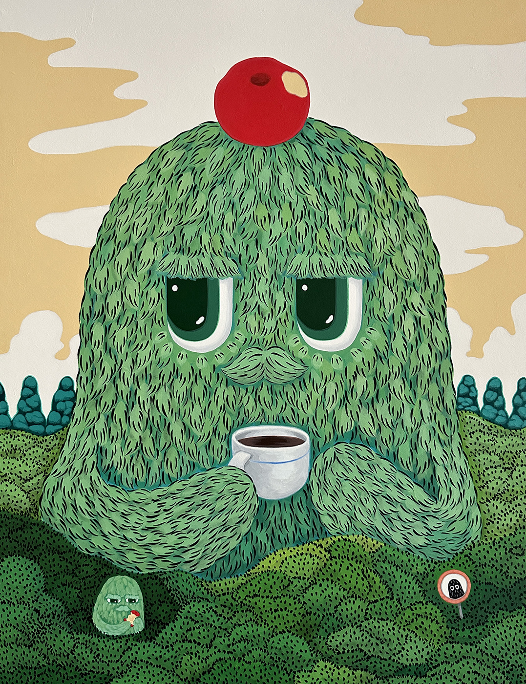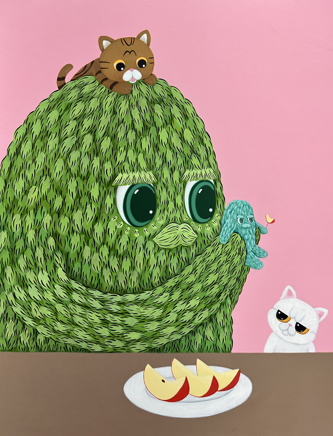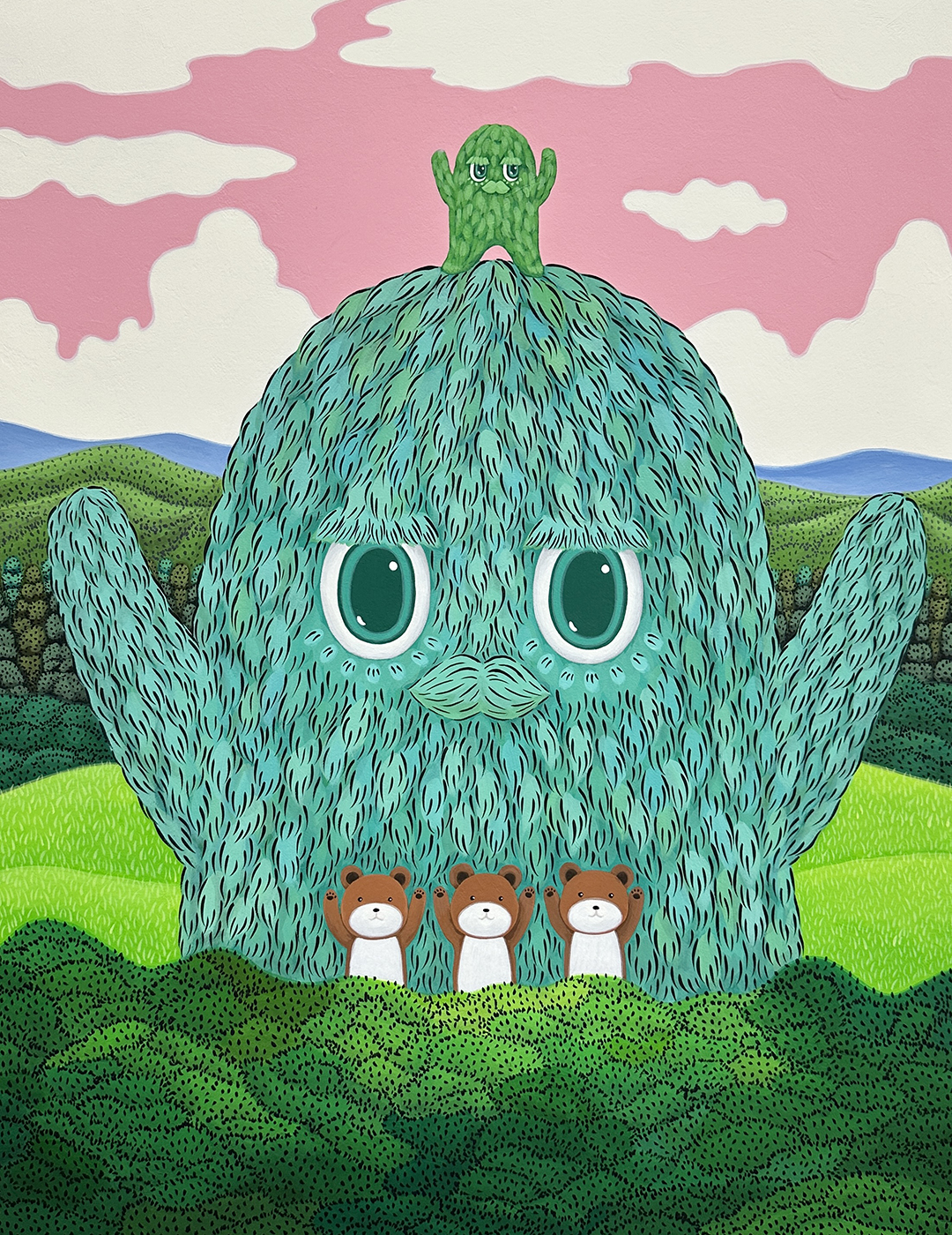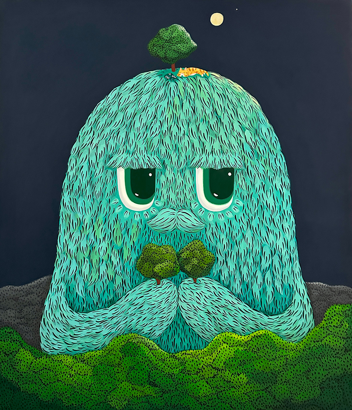 李素乙:「我希望那些被人們遺忘的動物們,無論牠們是身處於森林或是城市裡的,都能在我的畫中獲得圓滿結局。」,根基於對動物保育議題的啟迪,並結合古代神話的綺想,李素乙的作品展現出一個獨特且魔幻的世界觀,在她的架空國度裡,「Mimyohae」被視為守護森林的山神,以此為發端,牽引出無數迷人物語。