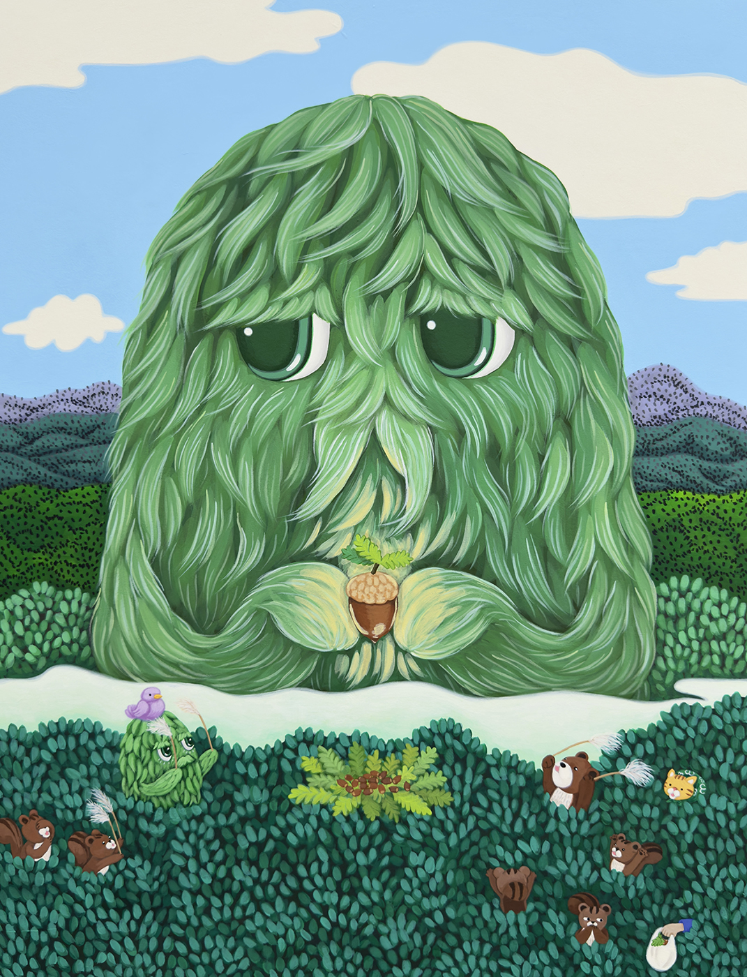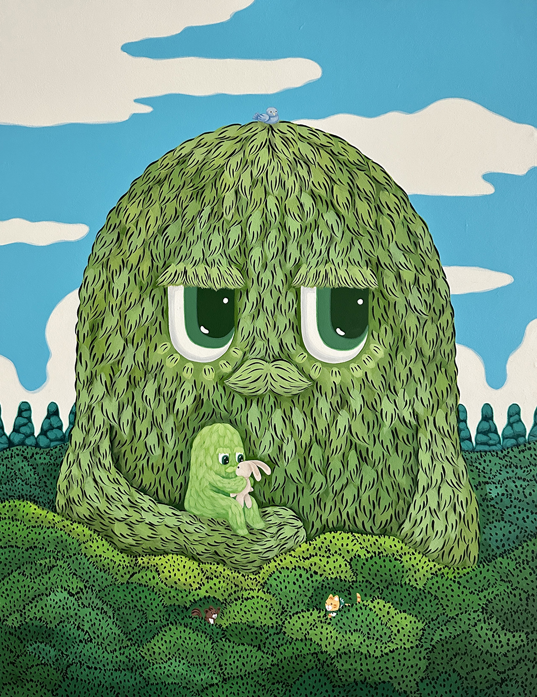 Lee Soeul: “My hope is that the animals that have been forgotten by people, either in the woods or in the city, will have their happy endings in my paintings.” Inspired by issues in animal conservation, Lee integrates ancient mythology to present a unique and magical world. In the world of Lee, “Mimyohae,” the guardian spirit of forests, becomes a starting point that leads to countless enchanting anecdotes.