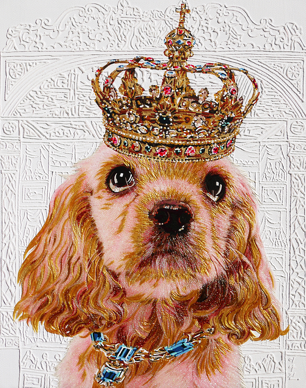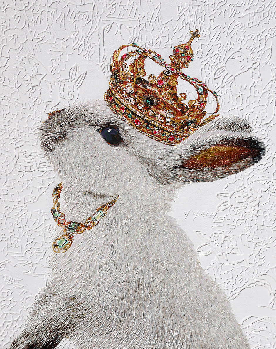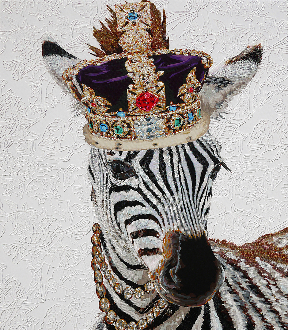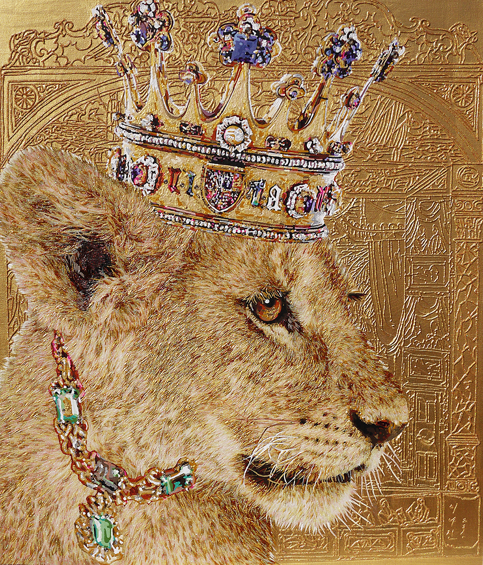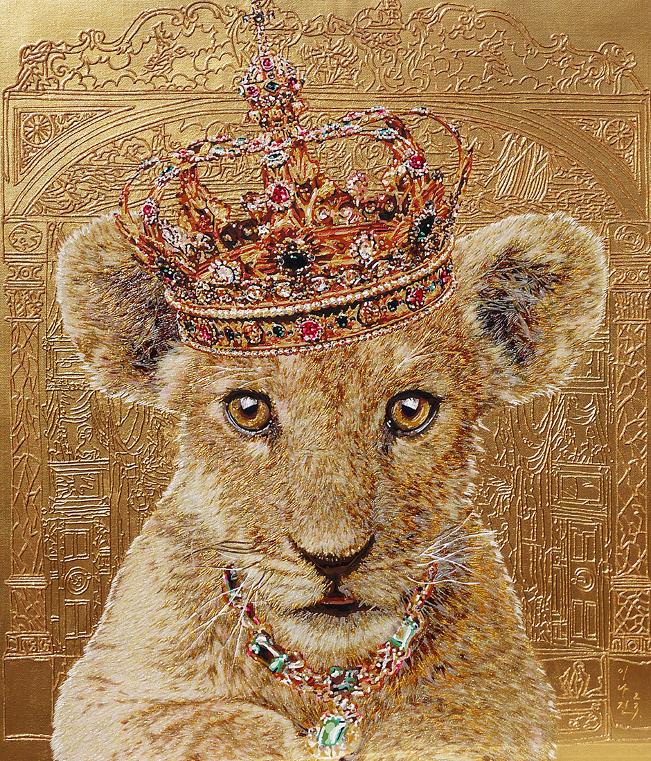 Diverse animals are shown in Lee Najin's artwork with vibrant details, lively fur, brilliant eyes, and crowns and necklaces decorated with small pieces of jewels. The tiny, shimmering sparks come alive as one approaches and admire from different angles; and can even bring the characters to life. The animal's eyes convey both confidence and curiosity. The paintings' depictions of youth animals can be interpreted as a person's childhood. Human lives consist of birth, childhood, adulthood, senior age, and death. The terror of an unknown world, unpredictability, and adult realities are similar to a journey that every person must experience at some point in their lives.