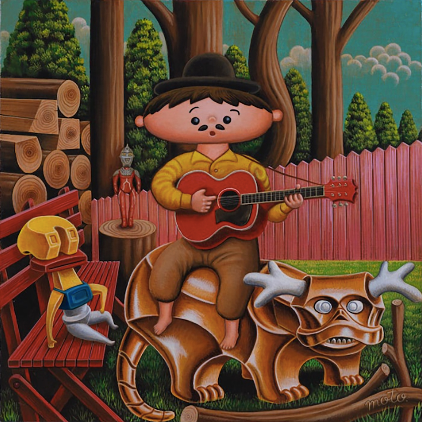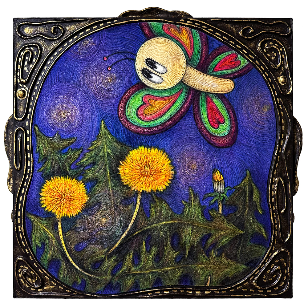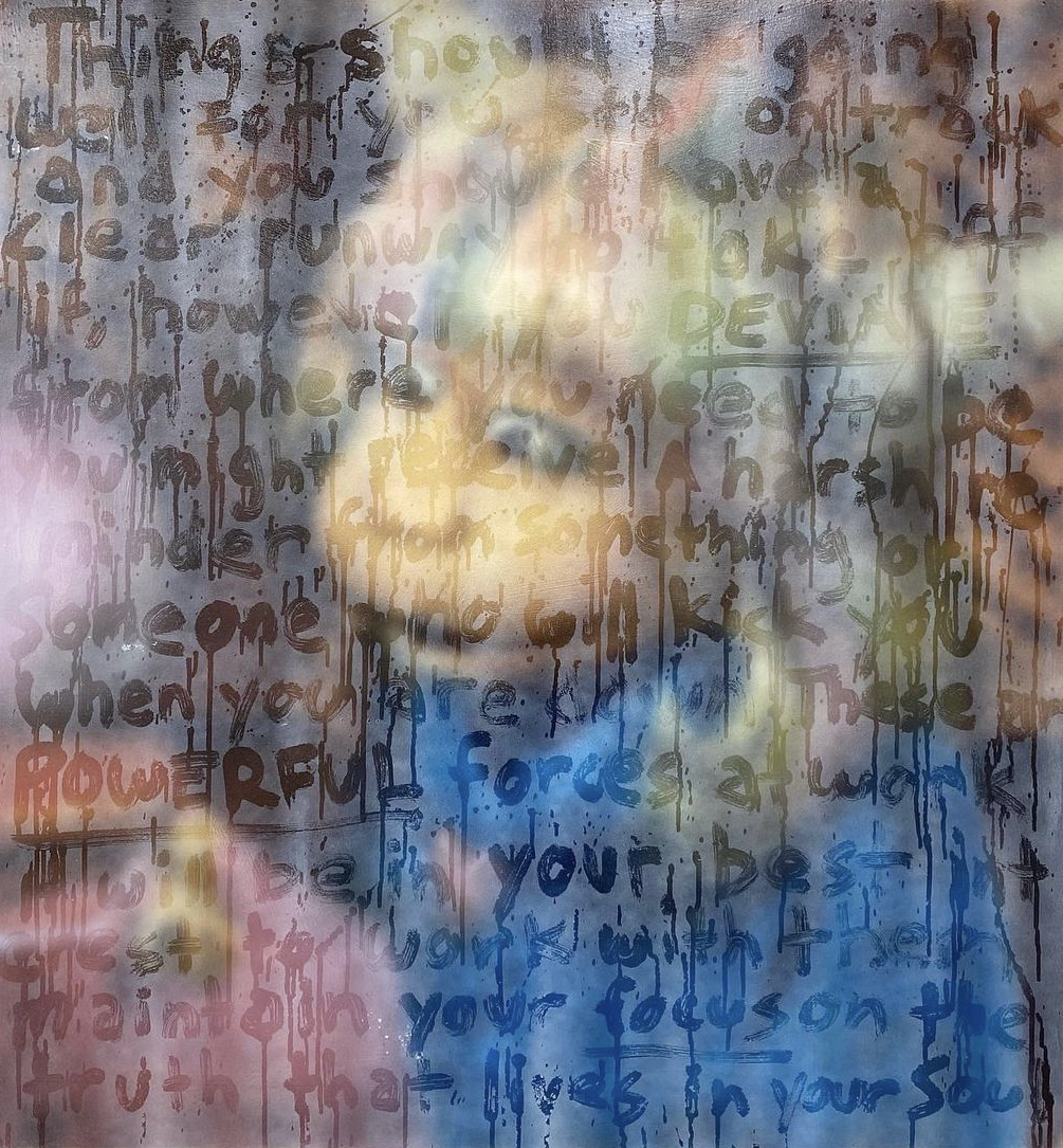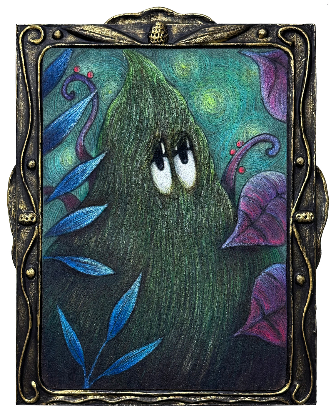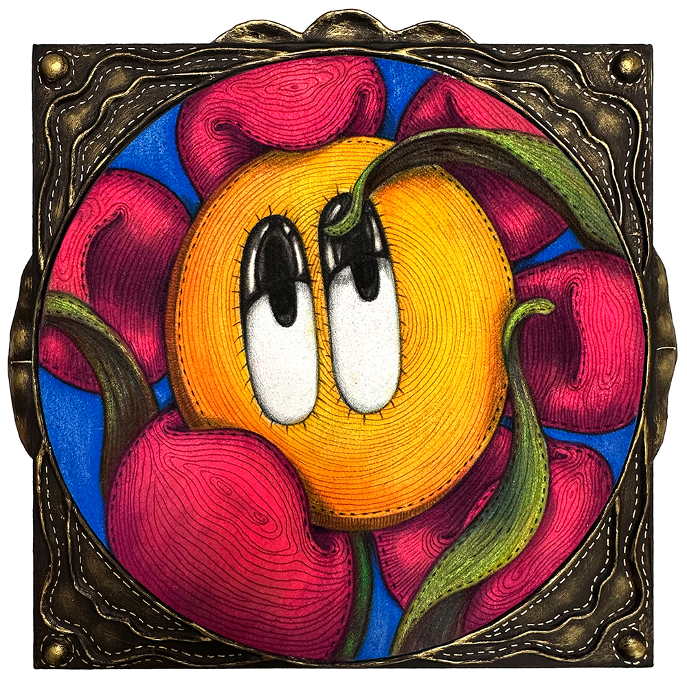 第一眼看到Niki Hare的作品,目光便不自覺地被畫面上搶眼字體與鮮亮色彩所吸引,她透過層疊交織的語句,構築出個人對存在的感知與意圖,並結合敘事文本中的時間感,流轉交織成一本耐人尋味的視覺日記;Zdenek Konvalina的抽象繪畫受到往昔舞蹈家身分的薰染與連結,創作過程依循身體與潛意識的即時反饋,藉各式細膩而不張揚的色彩及筆觸來探索物質與精神之間的比例關係,調和出藝術家內心的獨特圖景;Geoffrey Bouillot單色系列創作受東西文化的深刻影響,現居日本的他,作品除了挪用日本動漫元素,同時融合義大利未來主義、立體派和普普藝術的構成形式,將動漫角色幻化成不易直觀辨識的形態,藉此尋求新的互動關係。清晰線條和光影蘊造金屬般質感,搭建出風格獨具的奇想世界;智敉譽(Jimere)以生活周遭那些不識其名的花草樹木或石頭作為描繪對象,用以指涉生態與社會中無數缺乏重視或身份認同的邊緣群體,藝術家慎重地為它們製作精美的框,期許觀賞者能保持開闊的心態,與天地萬物建立愛的連結與交流。