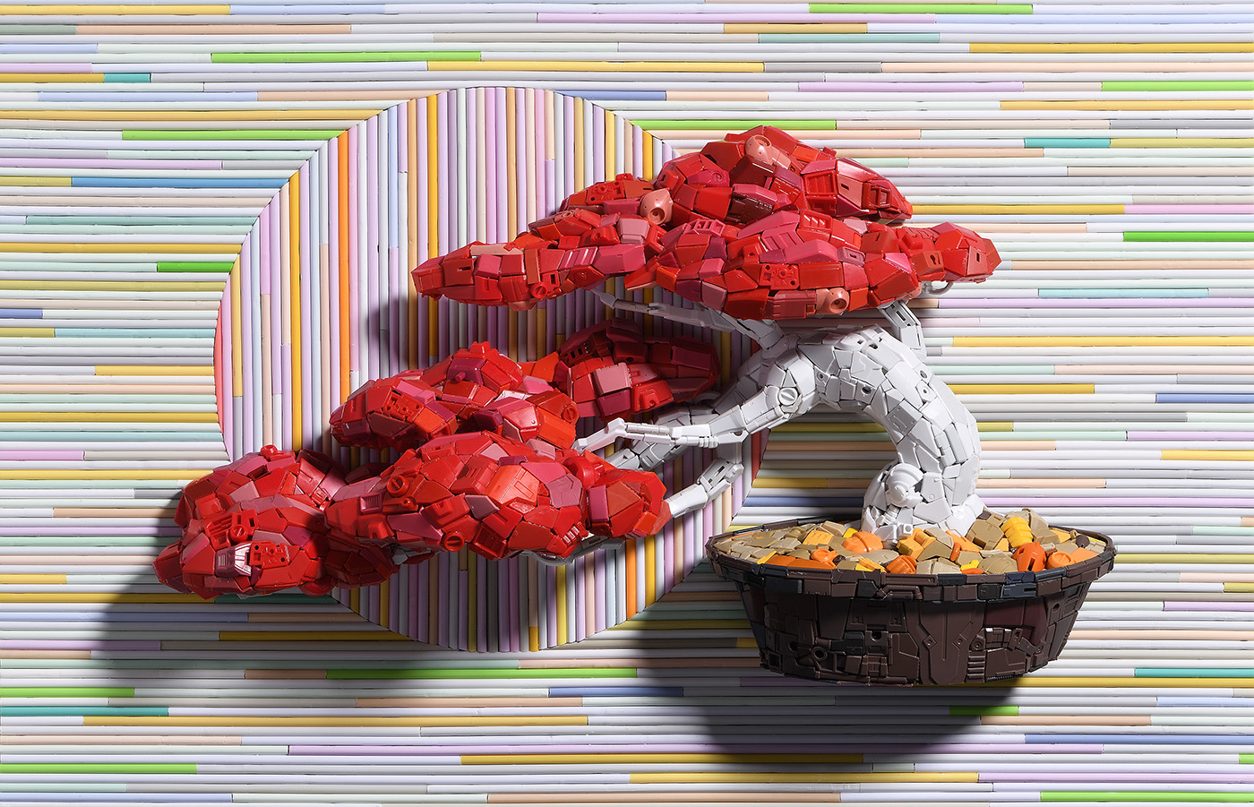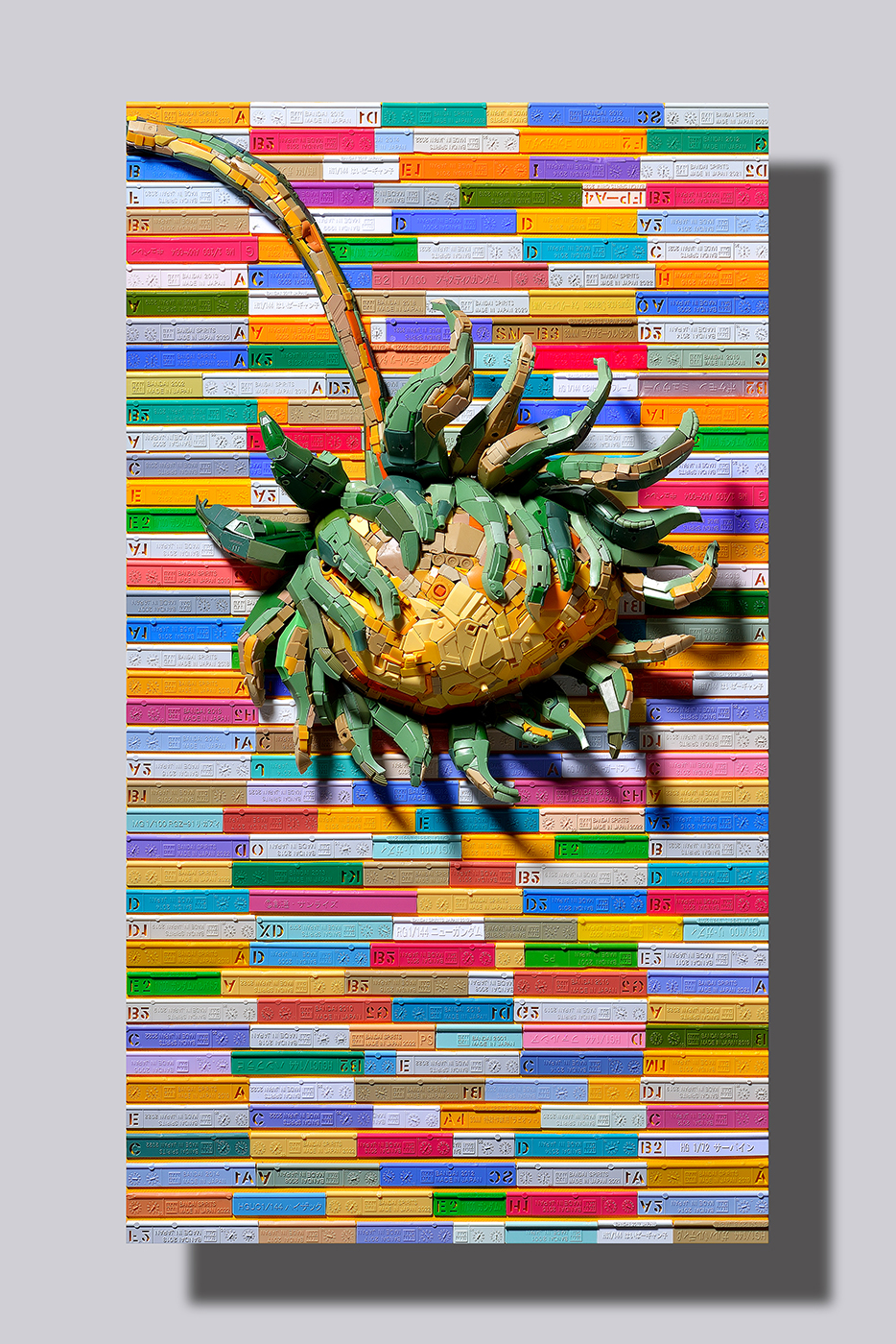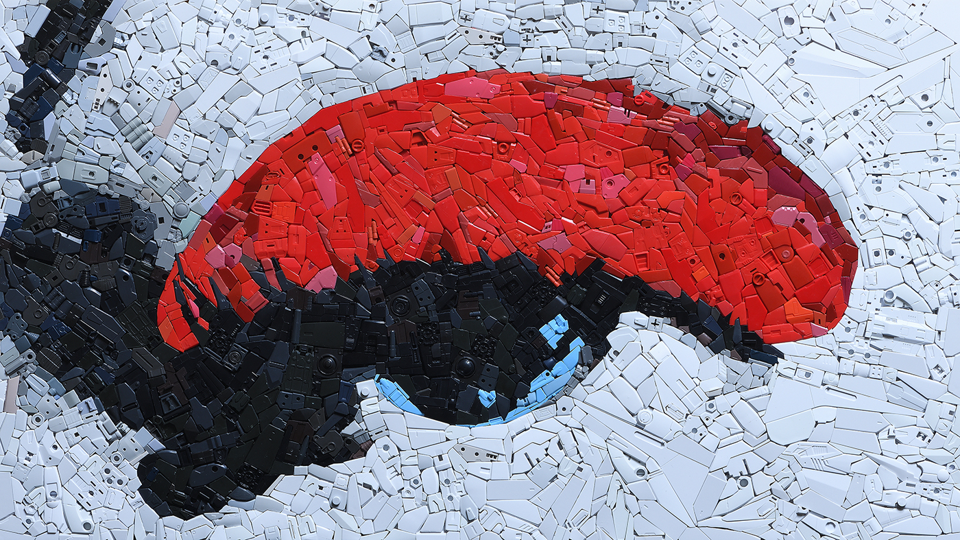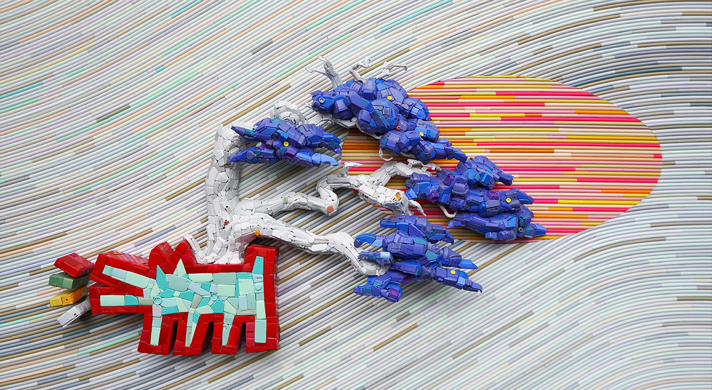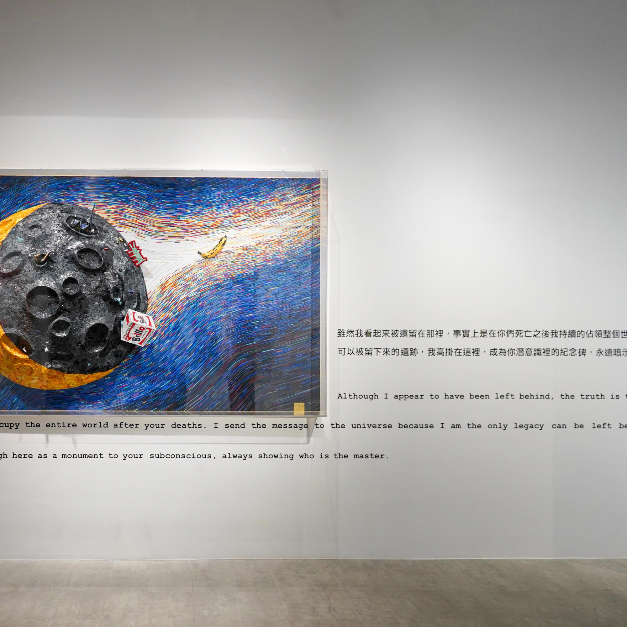 "Cultural poaching" is the core concept from which Lin's creations begin. He observes our contemporary social phenomena from a macro perspective and processes the cultural materials in order to reflect the contemporary world. With the "Illusion of Smiling Twice" series, for example, he metaphorically embodies the ecosystem of global art market by cutting and adding more work on Takashi Murakami’s prints; and with the "Butterfly Painting" series, he explores life experiences in different perspectives. In the "Gundam Series", his most representative works, he forms Gundam model parts as a language. Not only symbolize the "Gundam models" as the product which was brought upon as the result from the interaction between the post-industrial era and capitalism also carry the historical significance meaning of the global sweep of anime culture. The artist takes the symbols from both Eastern and Western art histories and pop culture to juxtapose and reassemble them in an attempt to probe the values of our time in the context of contemporary art, and to reinterpret the framework within present boundaries.