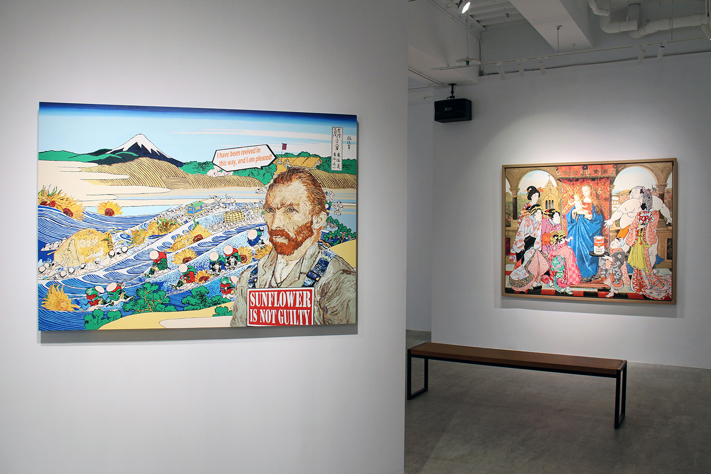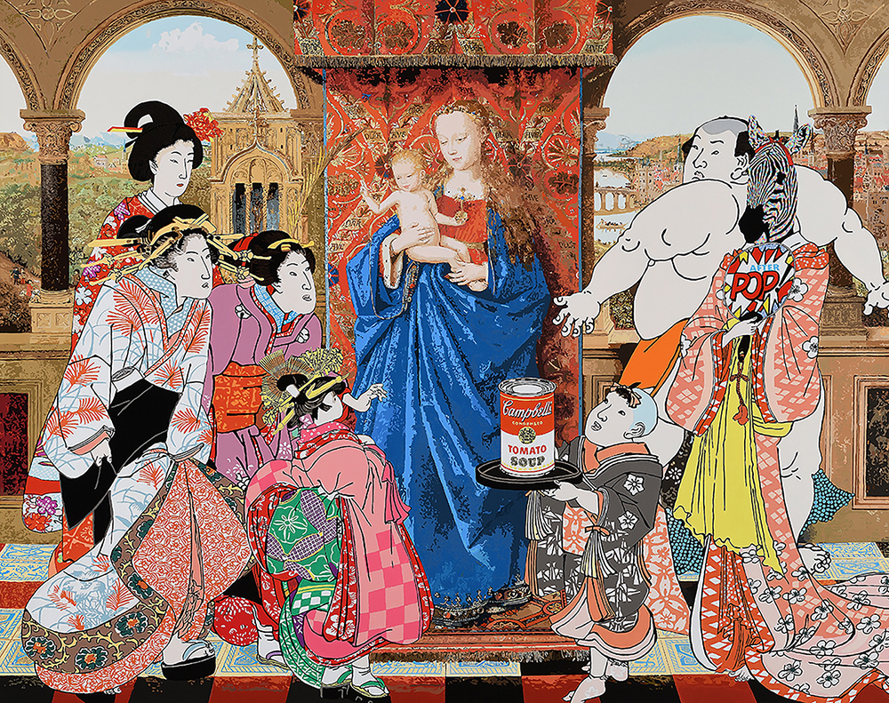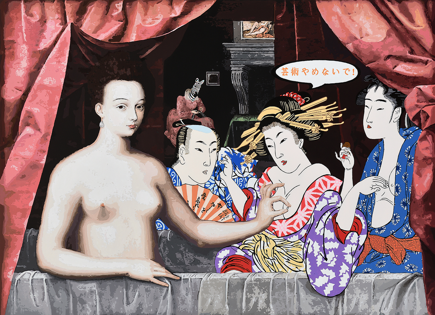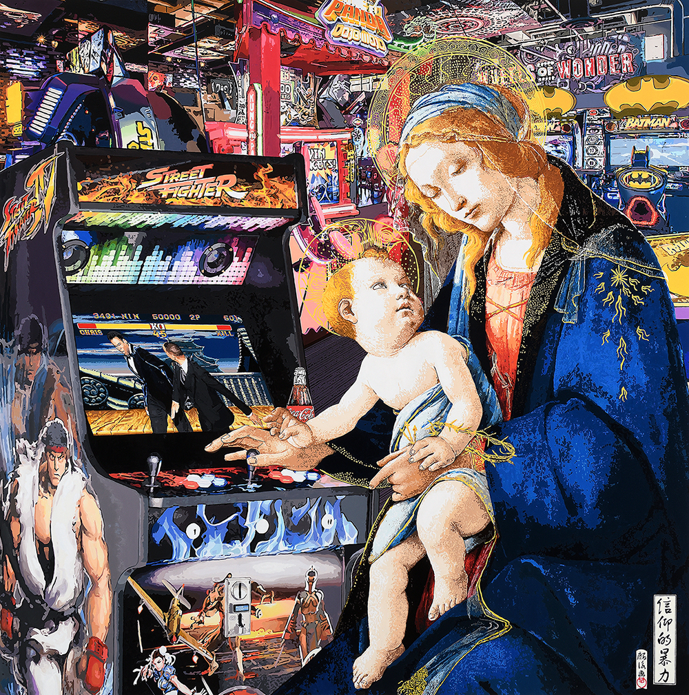 昔日的世界經歲月沖刷最終歸於無形,得以留存的便成為人類重要思想依據,在全球化趨勢下,隨著多元資訊的快速流動,思想主軸、社會結構及文化價值已然產生質與量上轉變。身處一個藝術與議題緊密聯動的當代藝術世界,黃麟詠的「文化嬉遊」表達符號翻玩帶給人們新的美學與問題反思,時而諷刺、荒謬、時而卻浪漫、幽默,搭建出屬於我們當今時代的「浮世繪」,詼諧訴說時間長河搬挪下信仰與價值觀的改變。