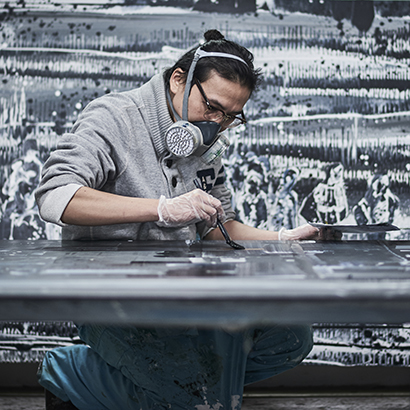 His works are often inspired by daily life and are created by moving or expanding random images to construct sceneries that are at the same time lifelike and unreal. As for the composition, Chiu uses extensive low-saturated oil painting to create traces of passing time, while the repeated layering and removal of pigment compresses the moment onto the painting, creating an effect where the seemingly backlit, fragmented silhouettes give a sense of alienation and uncertainty. The compressed spaces are metaphors for the wandering souls in this image-flooded society, presenting the afterimages of the highlights of life. The works show a strong sense of contemporality and the younger generations’ fast-paced, careless, and unique mindsets, as well as the urban scene. The works investigate how images impact the younger generations and remind viewers of intimate life experiences.