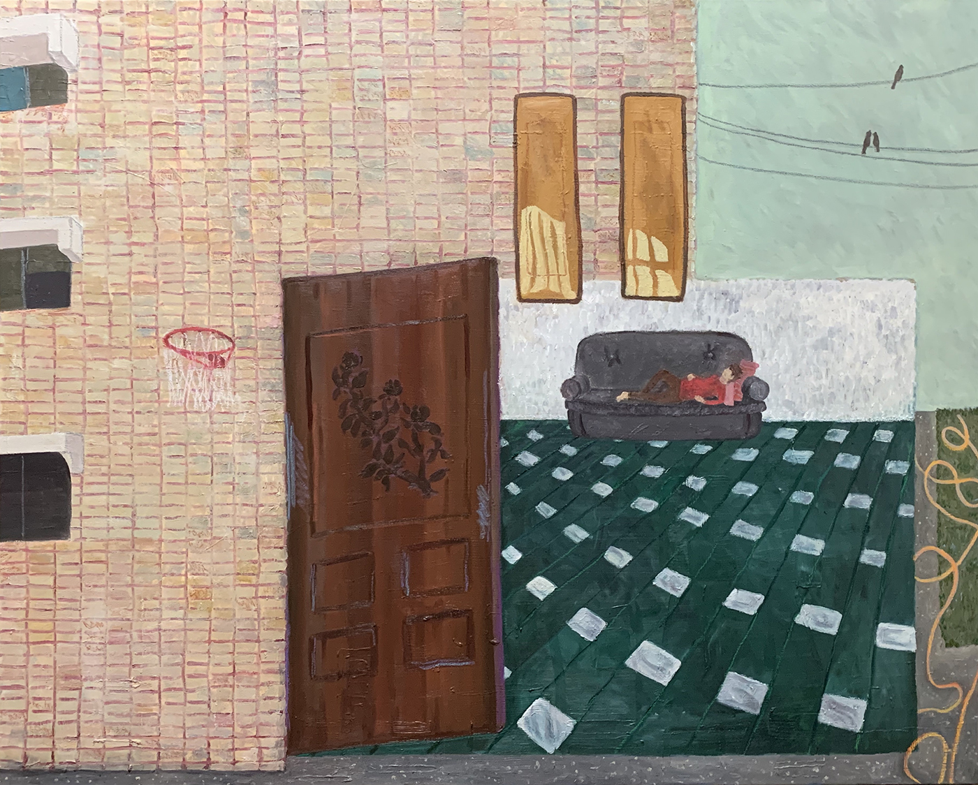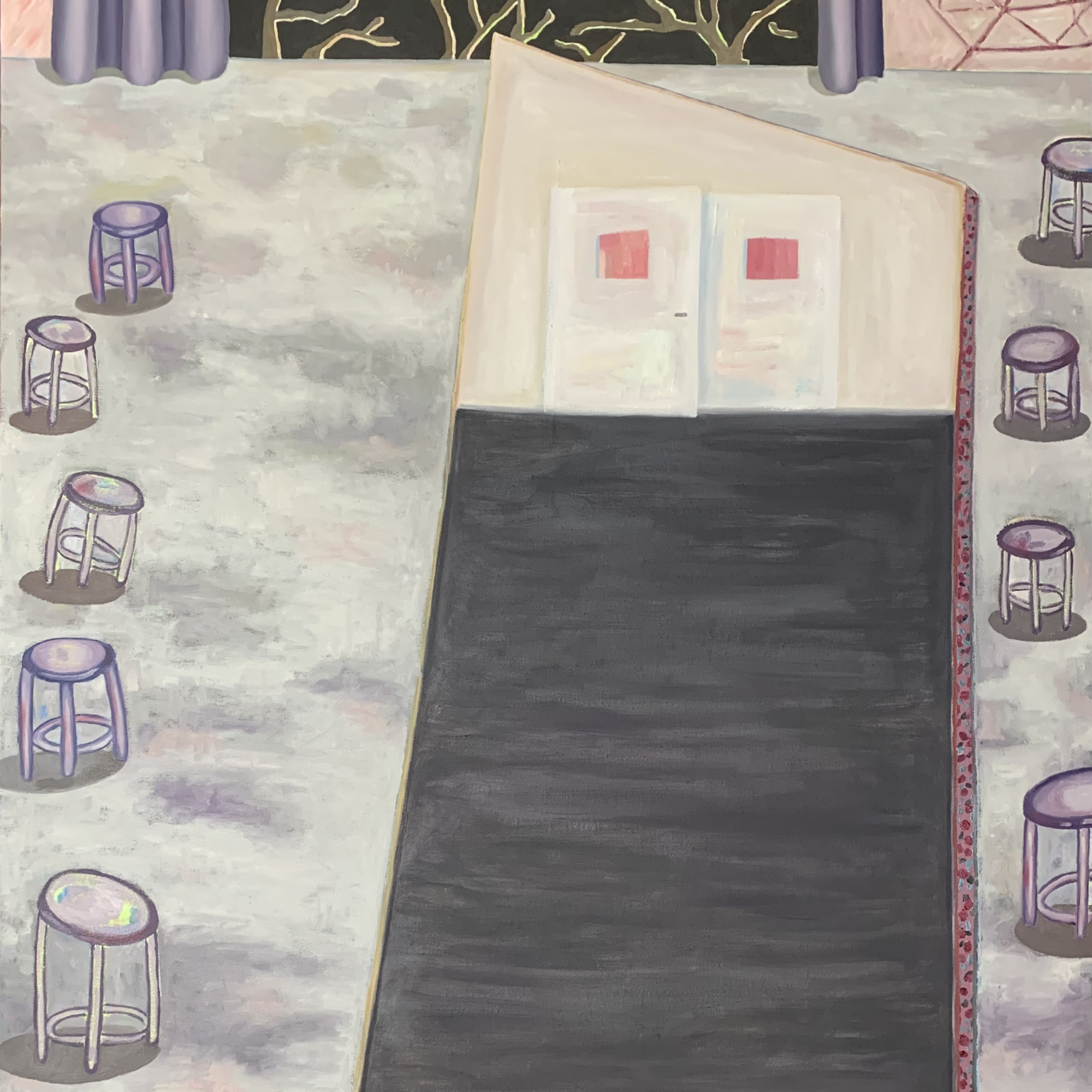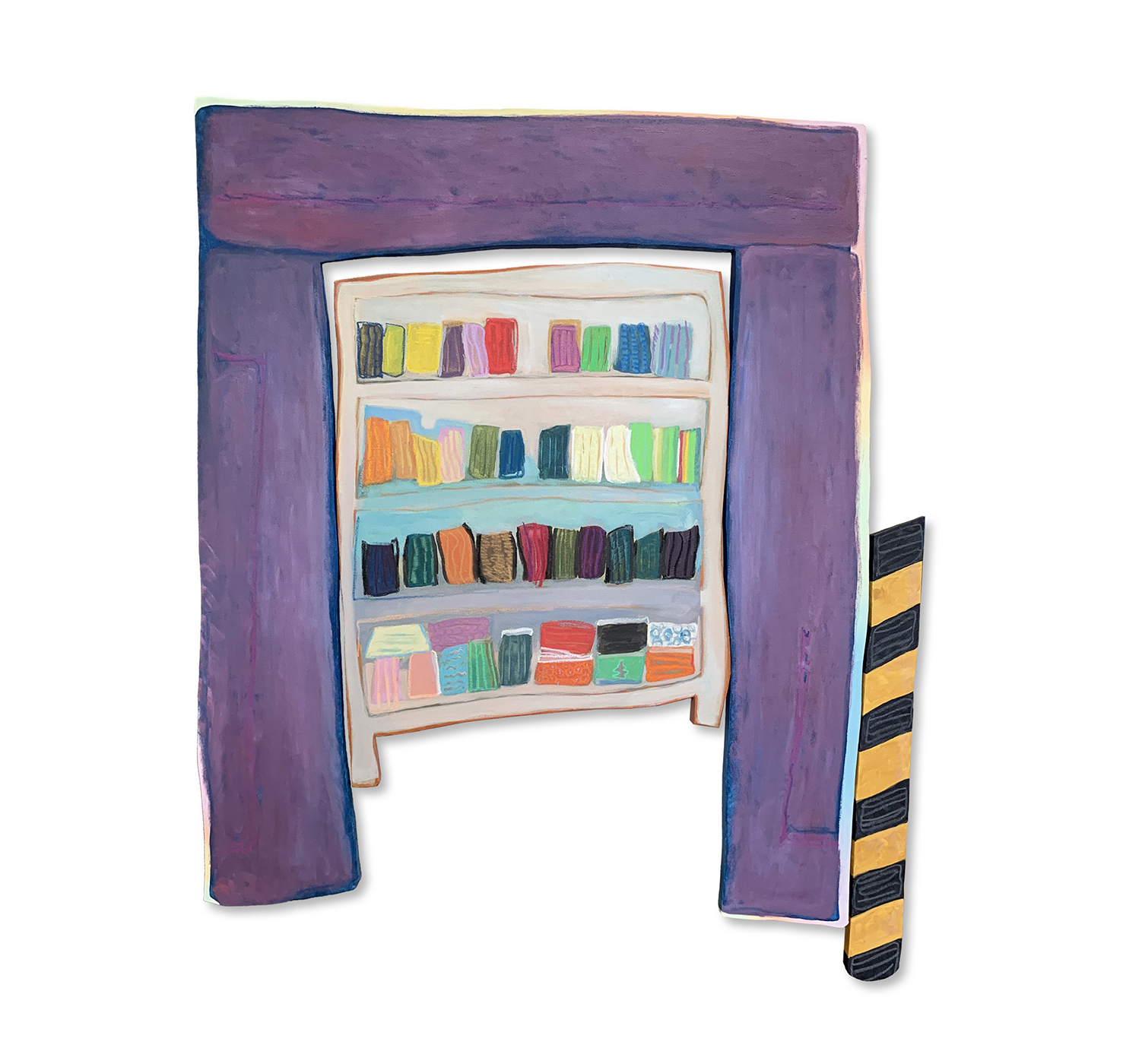 對傅詩霖而言,自我探索是持續一生的功課,亦投射在她的創作過程裡。紛陳的柔和色調構築其生命的底色,遂將不同時空下的記憶片段拼拾堆疊至畫面中,而軟鈍的線條顯現自我知覺尋索過程的不確定性,近兩年她更轉而使用不規則木板創作,藉由畫板上的凹口拆卸、組合,隱喻其不斷轉換的身份。當作品完成,紊亂的心靈因獲得重整而感到無比滿足,藝術家希冀觀者也能從這些習以為常的事物中,勾喚起它所存在的意義,這些陪伴著我們走過每個生命歷程的日常累積,在光陰荏苒中成為每個人最安心的庇護。