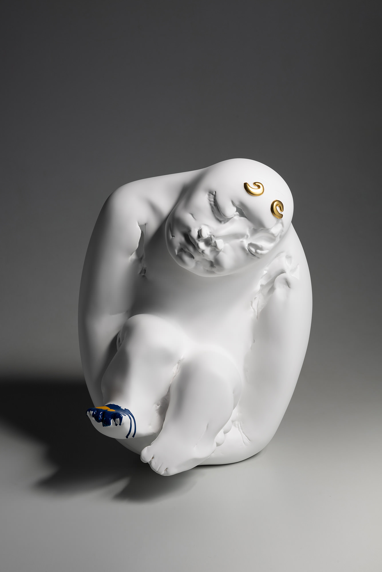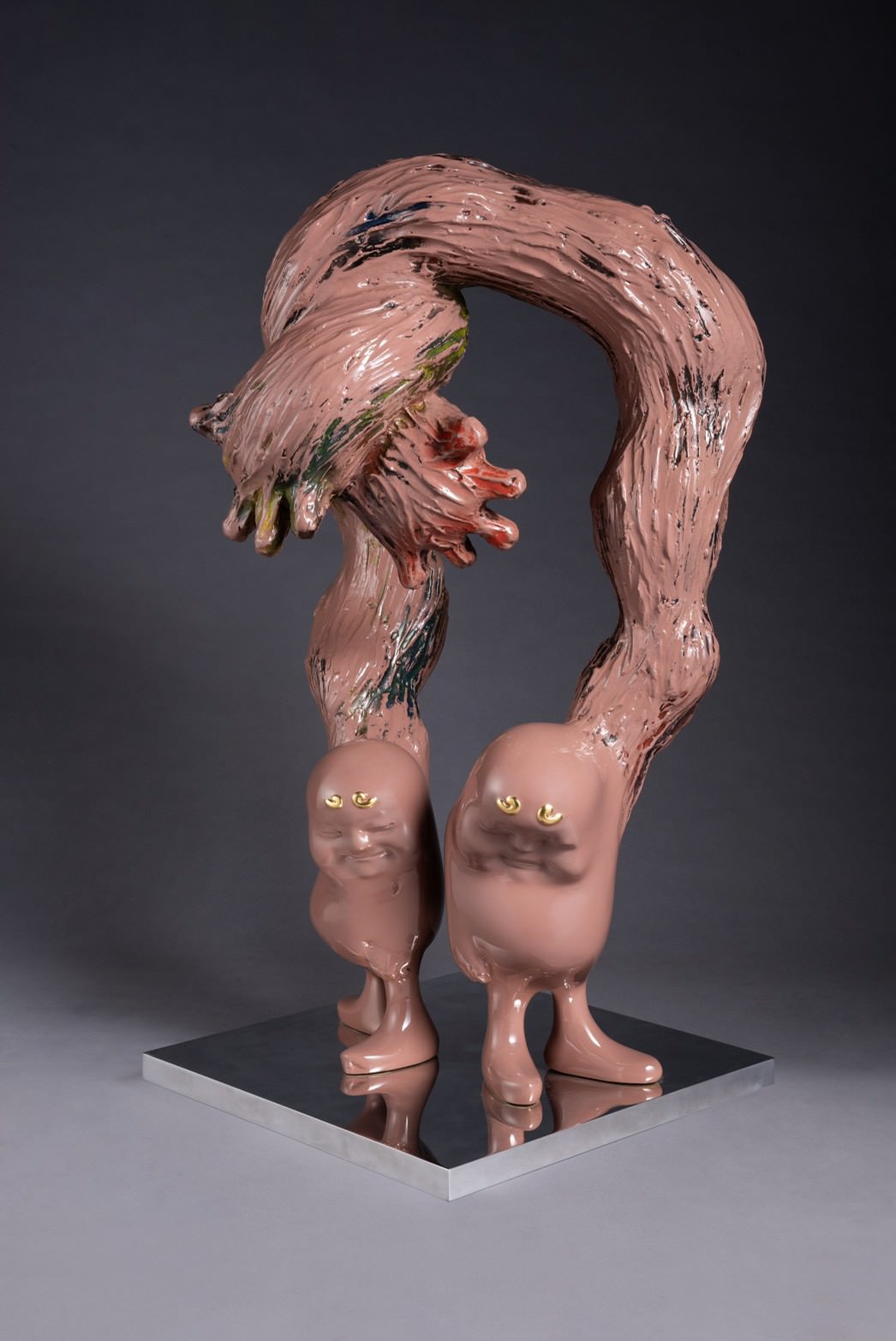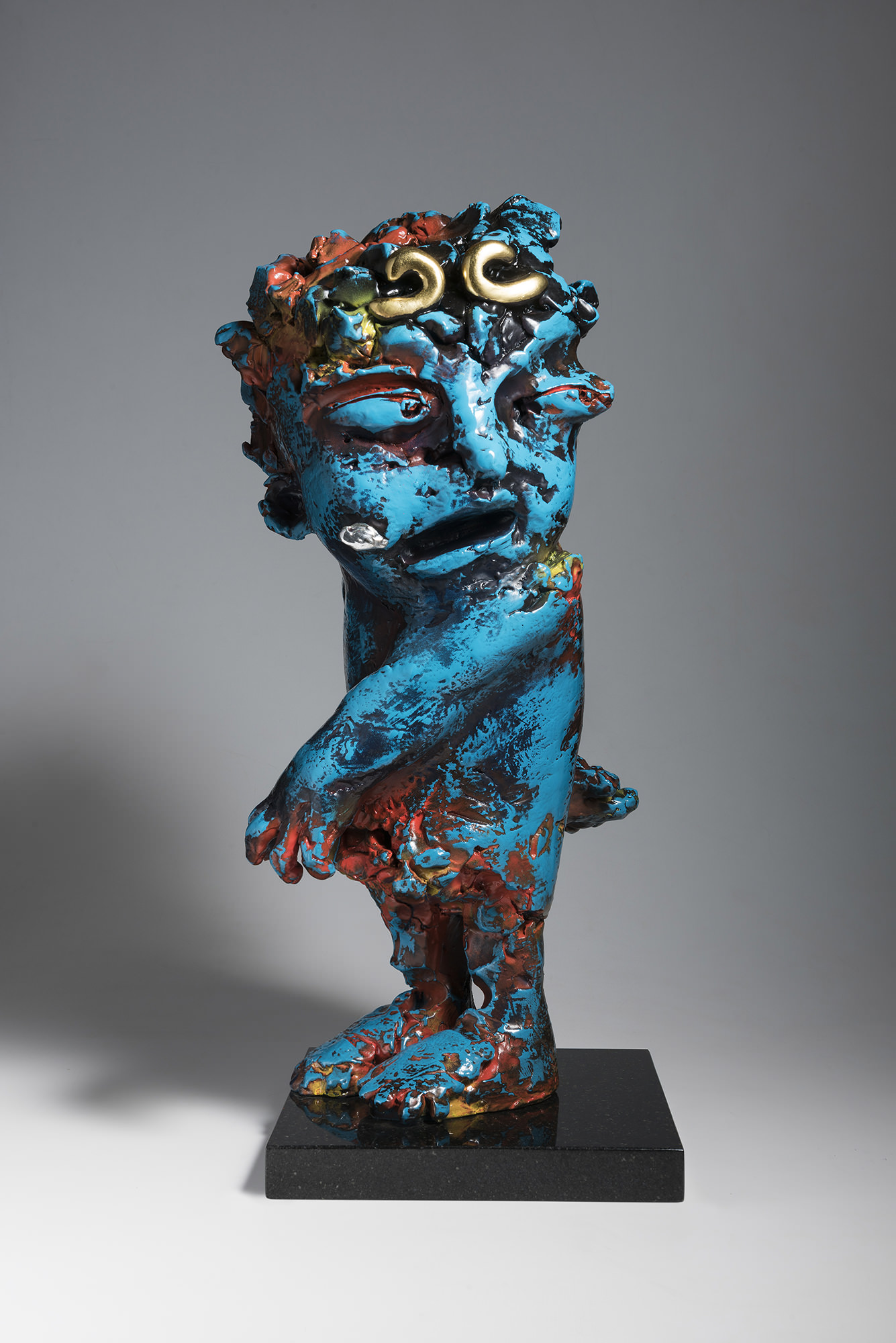 1971年出生於台中的藝術家蔡尉成,畢業於大甲高中美工科,師承謝棟樑,有別於一般傳統木刻、佛像雕塑,他的雕塑風格更加地貼近民眾,且饒富趣味,而作品也堅持東方神秘含蓄的精神,將和諧溫潤的銅及剛毅冰冷的不鏽鋼兩種材質完美的結合,作品表面塗刷的紋理有華麗時尚的烤漆也有近似潑墨斑駁的歲月痕跡呈現,讓絢麗與樸實的質感,得以自在巧妙地相融。