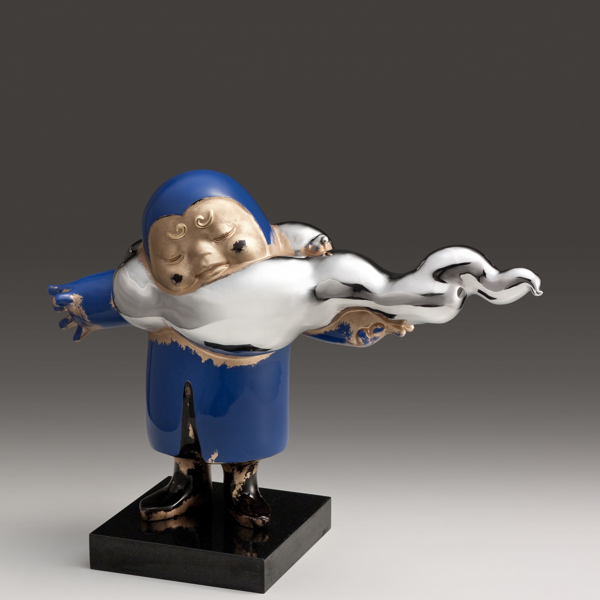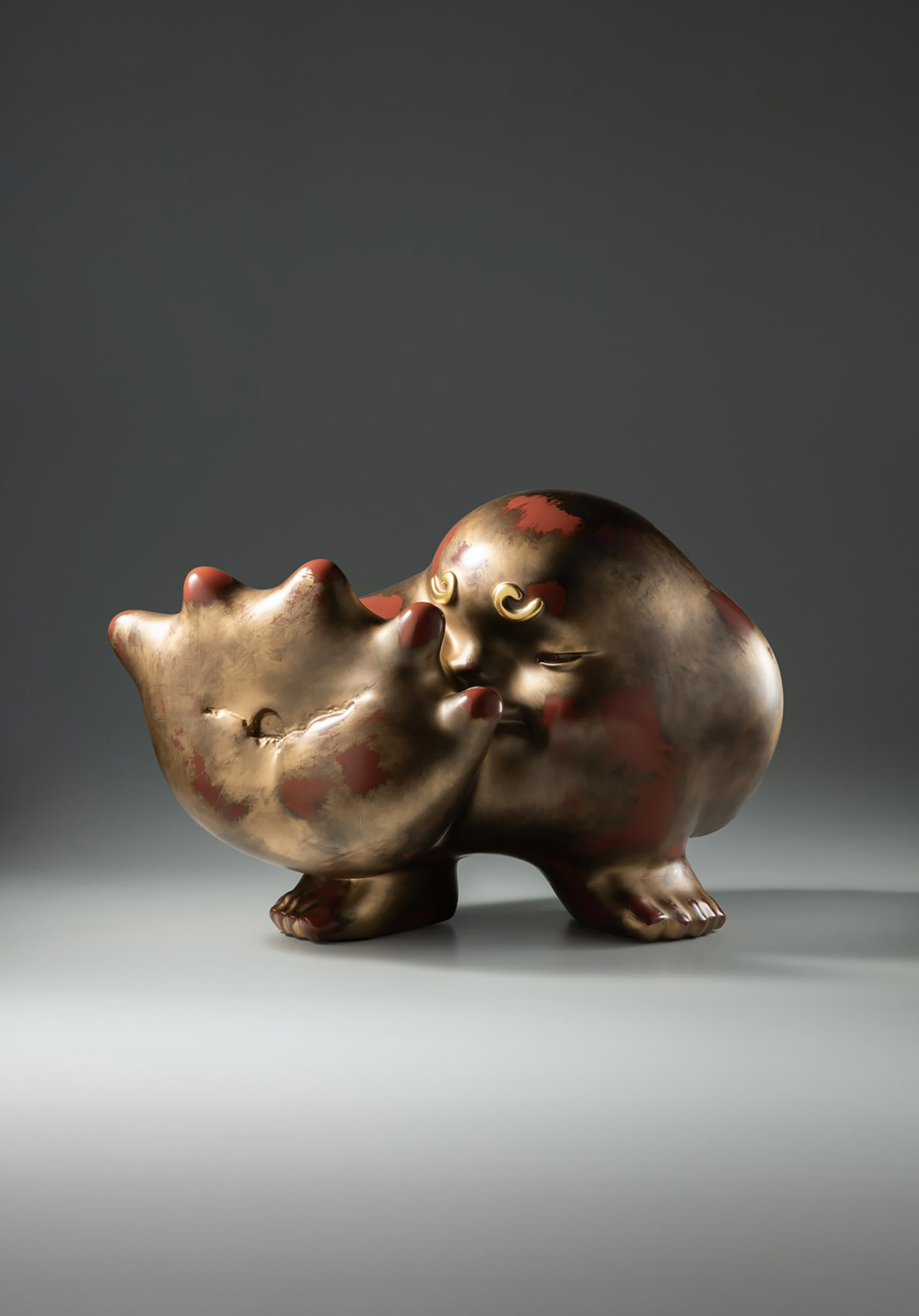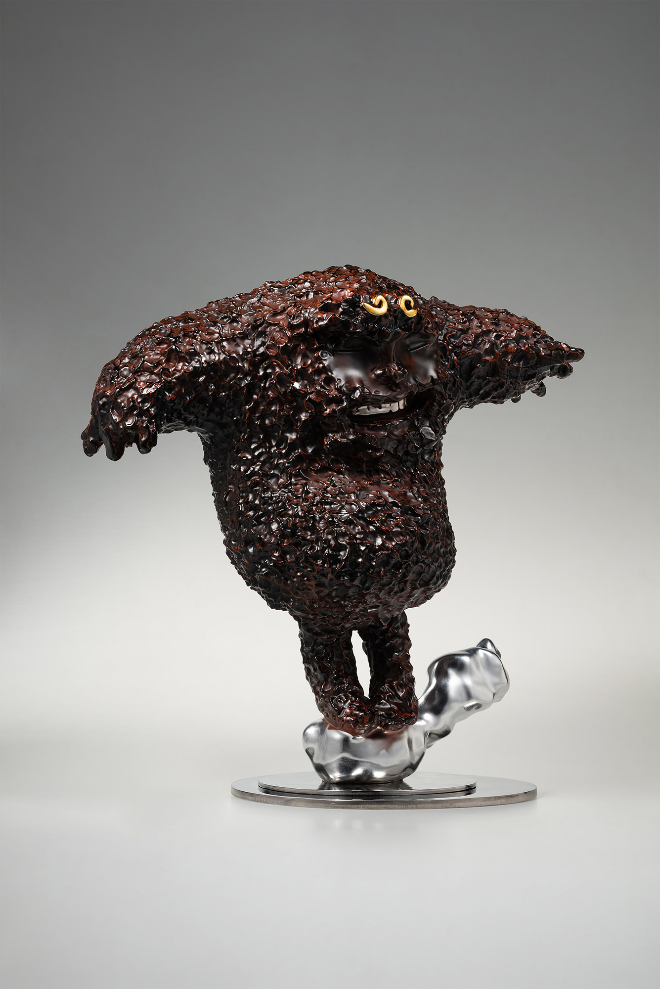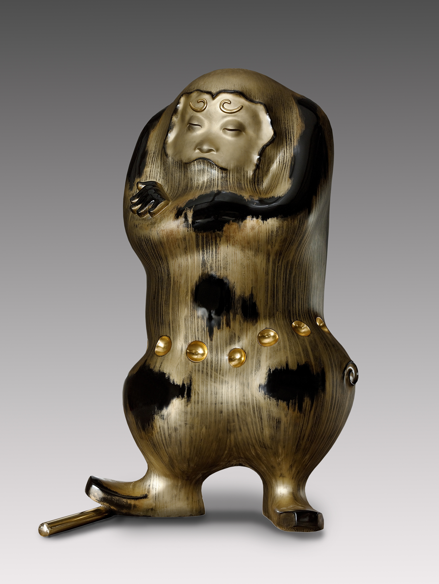 Born in Taichung in 1971, Tsai Wei-Cheng graduated from National Ta Chia Senior High School and studied under Hsieh Tung-Liang. Unlike traditional wood engraving and Buddha sculpture, his style is closer to the people and genuinely interesting. He also insists on implicit oriental spirit, perfectly combining the warm harmony of copper with the cold fortitude of stainless steel. His works are painted with baking enamel and mottled ink to show traces of time, so that beauty and simplicity can blend subtly and unrestrainedly.