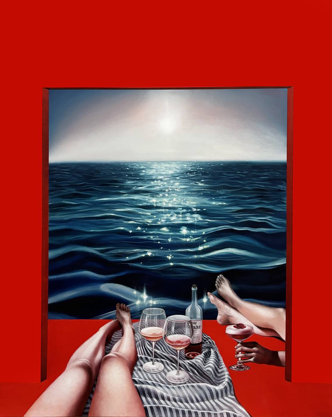 Her oil paintings center around the human figure, using her own body as both subject and narrative vessel to investigate themes of identity, gender representation, and societal perception. Treating the self as a site of experimentation, she delves into the intricate relationships between the individual and the collective, the real and the imagined. Working primarily in a realist style, Hsiao often incorporates negative film effects to explore the fusion of the human body with various foreign elements. Contemporary and playful references are woven into her compositions, offering a visual response to the socio-temporal landscape and reflecting the spirit of our times. Drawing from fragments of memory, she reconstructs and reinterprets objects to translate emotional experiences and project inner states, creating deeply personal and psychological visual narratives.