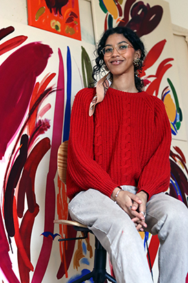 Her work explores the search for balance and the connections between individuals. By intertwining or disrupting vivid colors and organic forms drawn from nature, she creates abstract compositions reminiscent of ecosystems, evoking a sense of abstract landscapes inspired by fleeting emotions and a desire to escape. Foltz skillfully uses ink, oil, and paint to build organic structures and layered brushstrokes that generate a natural rhythm of blooming color. Through the interplay of visual rhythm and negative space, she releases an internal breathing tempo, allowing color to stir a sense of spatial uncertainty in unexpected moments, extending the boundaries of visual perception. Foltz has participated in the Blank 100 art residency and her work was also featured in a November 2024 art auction at Weserhalle.