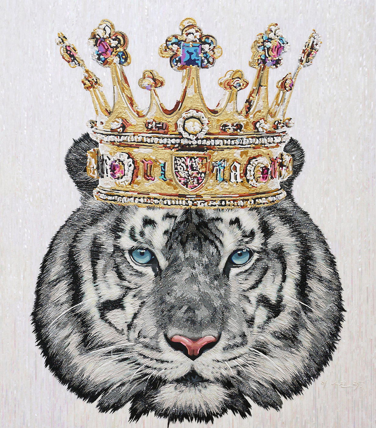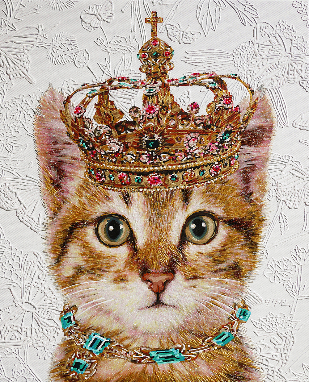 Diverse animals are shown in Lee Najin's artwork with vibrant details, lively fur, brilliant eyes, and crowns and necklaces decorated with small pieces of jewels. The tiny, shimmering sparks come alive as one approaches and admire from different angles; and can even bring the characters to life. The animal's eyes convey both confidence and curiosity. The paintings' depictions of youth animals can be interpreted as a person's childhood. Human lives consist of birth, childhood, adulthood, senior age, and death. The terror of an unknown world, unpredictability, and adult realities are similar to a journey that every person must experience at some point in their lives.