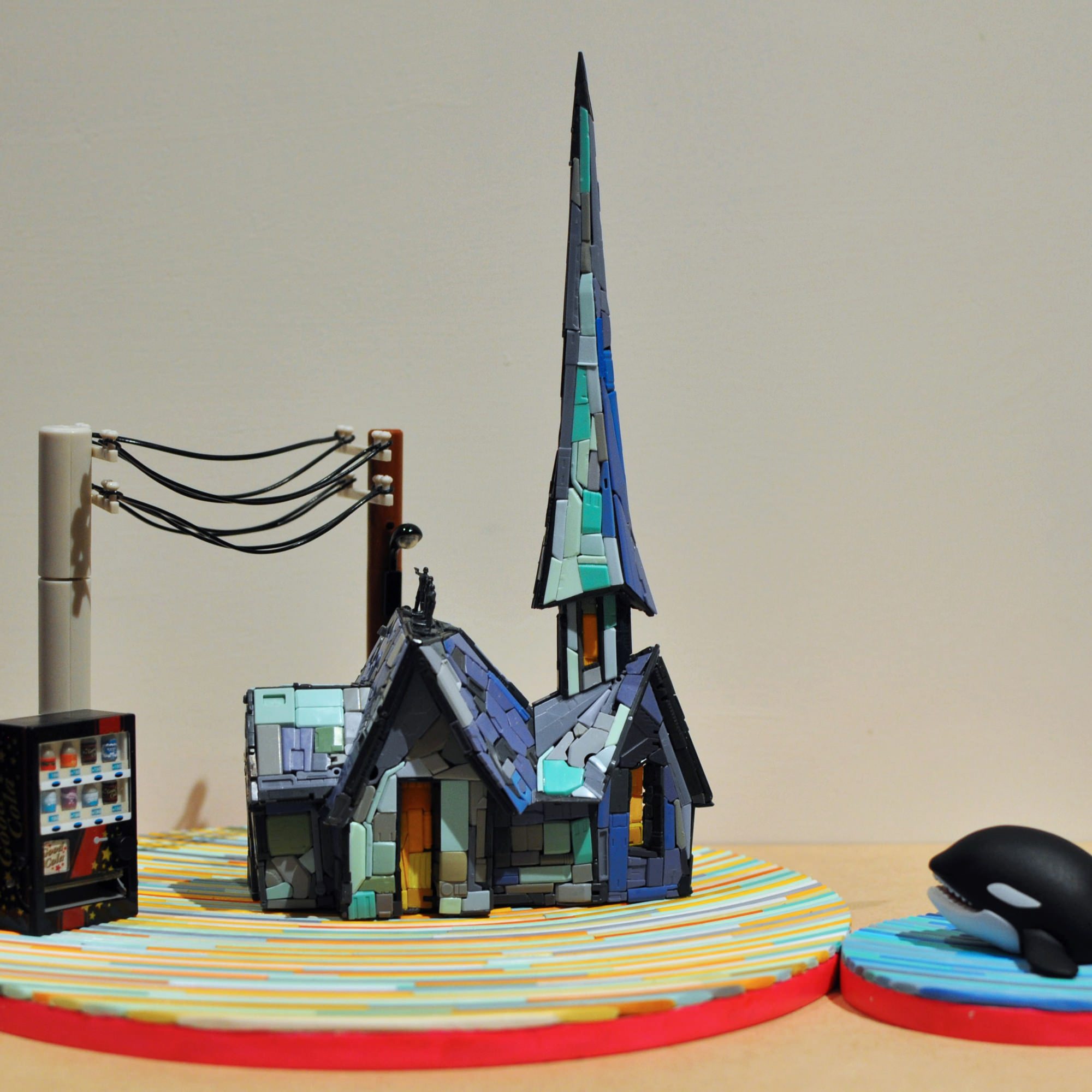 Lin’s work “Named as Van Gogh to be a duplicate symbol” deconstructs and reconstructs the church from Van Gogh’s Starry Night using the parts of Gundam models, transforming the graphic image into a three-dimensional work and putting capsule toys into Lin’s work to inspire a new mark. For the public, Van Gogh’s Starry Night and Gundam are both symbols; by presenting a symbol with another symbol, the artist allows the two symbols of social consumption to interact through “symbolic dismantling” and the “translocation of essences”, which understand more human ’s consumption of culture toward the model of Gundam and Van Gogh. As a result, on the one hand, the work reflects the extravagance and consumption in the cycle of consumerism, while on the other hand, the work uses mass-produced plastic models to reflect the issue. Through both internal interaction, the form enables reconstruction after deconstruction and extends its artistic connotation.