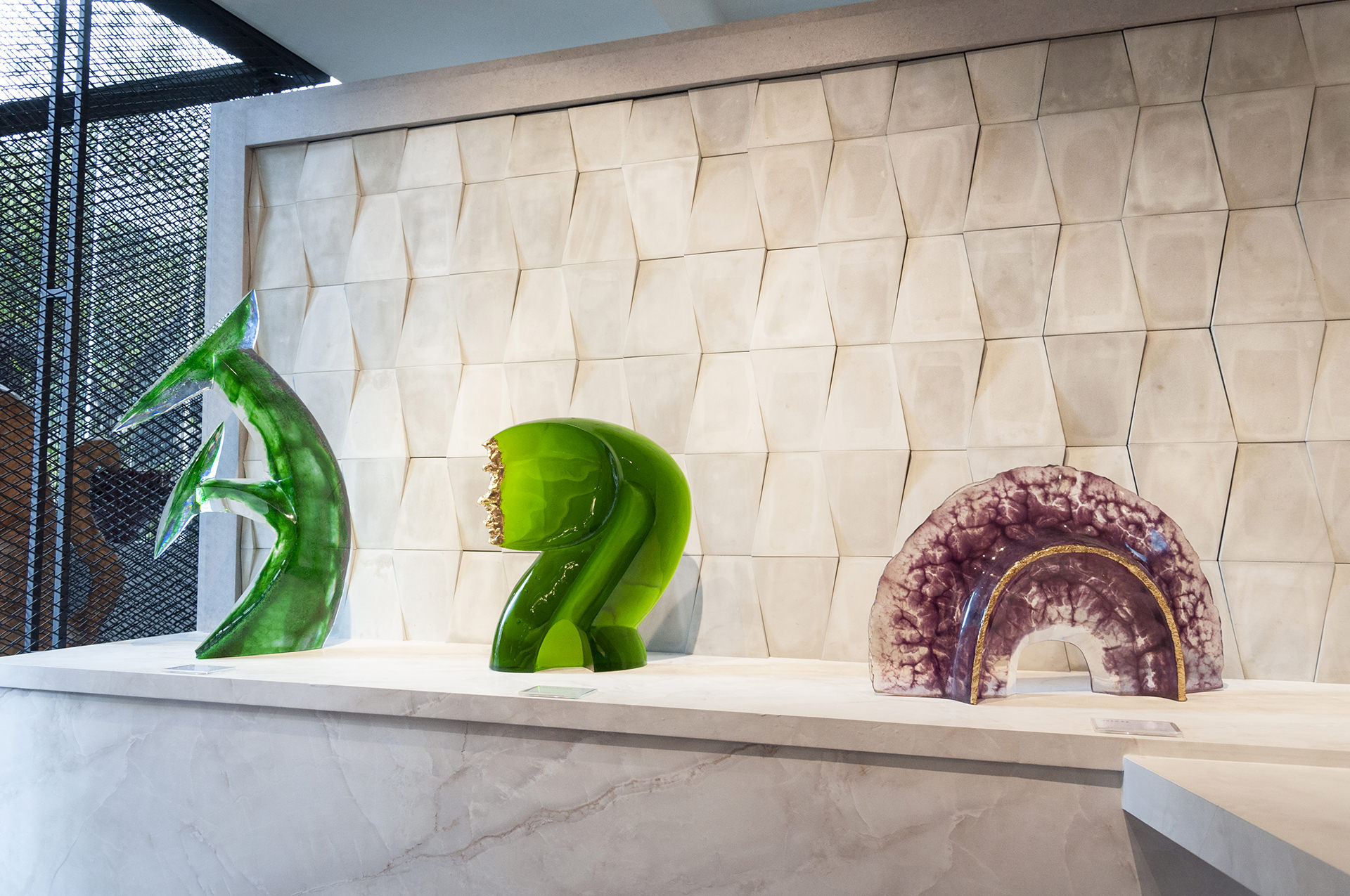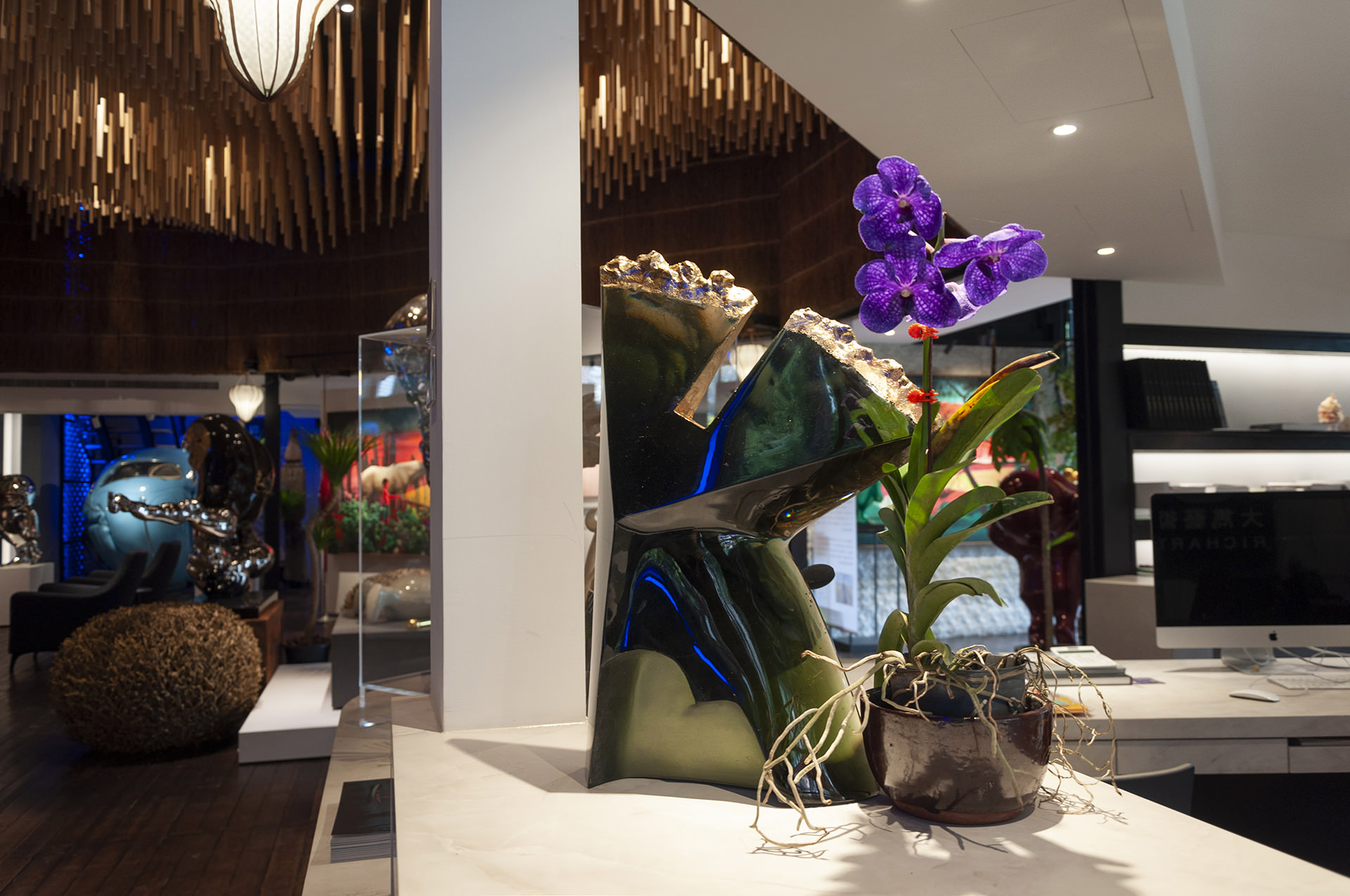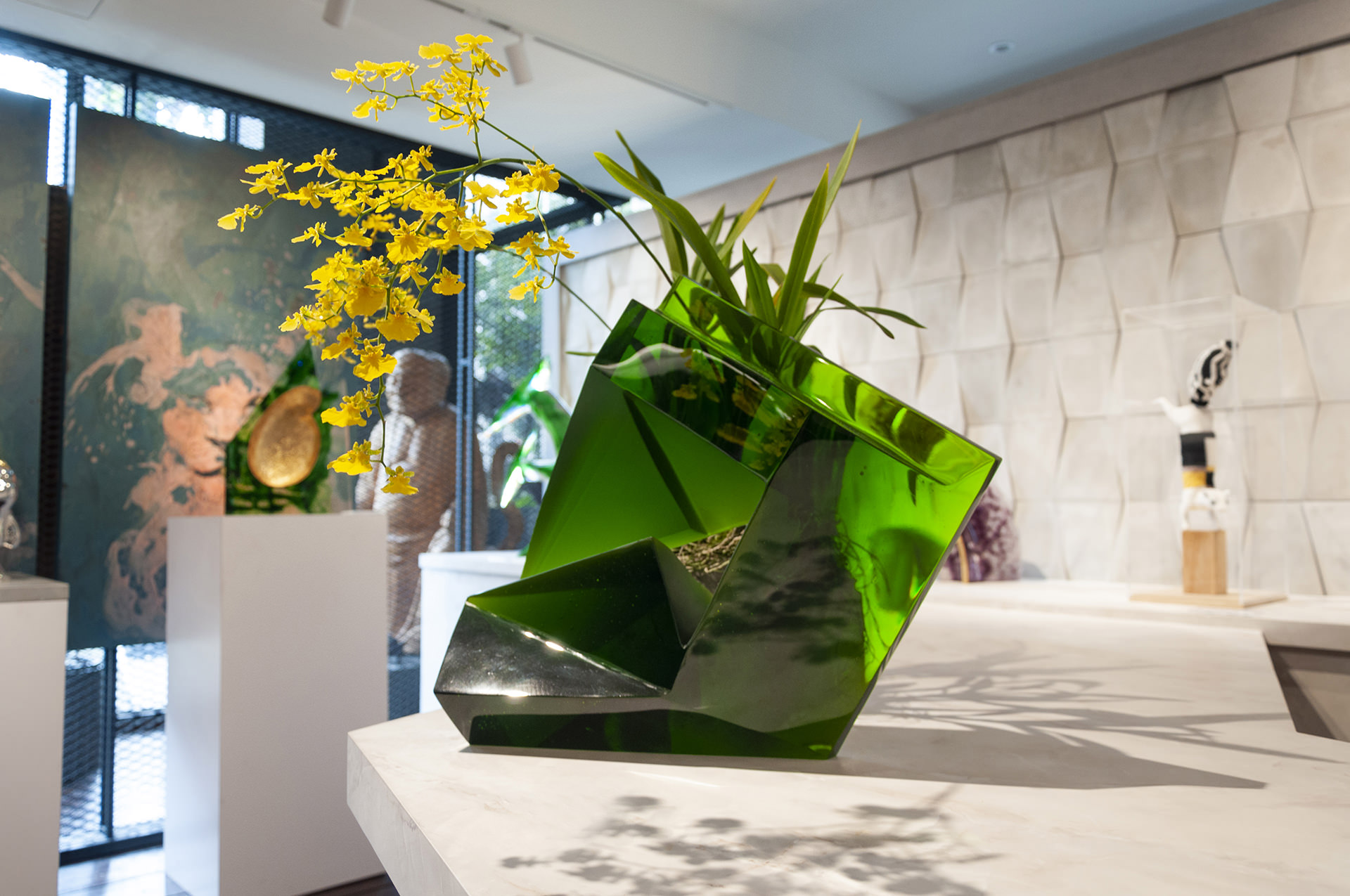 2021年開春時節,大雋藝術特別策劃《玻光.靈語》許文龍玻璃藝術創作展。本次展覽聚焦其第二時期代表性作品,該時期藝術家回歸故土,從人體簡化及隱喻風景為象徵,探討玻璃外部造型研究發展出《單色系列》,並進而研究玻璃的內部造型,從混沌理論中思考「碎形」在創作上的表現方法打造《碎形系列》,跳脫傳統工藝形式化的框架,轉向精神領域的追索。許文龍作品中獨特的造型詮釋,讓觀者得見玻璃的多態樣貌,其飽滿哲思的靈性內涵,引領你我感受靈魂深層的靜謐與清澄。