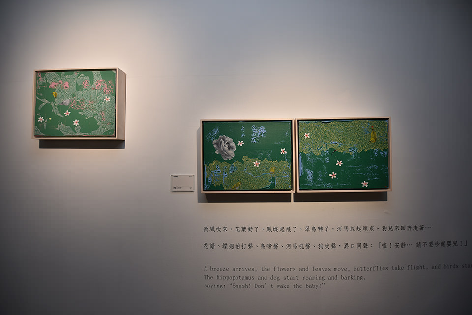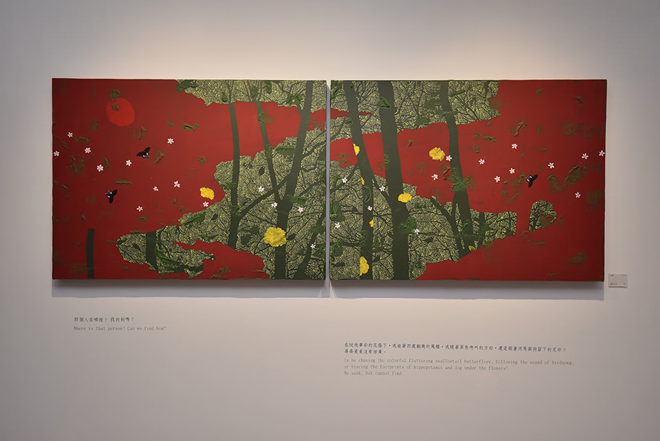 這是一場洋溢華彩的森林舞會,樹木以偉岸的形體,枝椏以優雅的姿態圍成舞池。日與月的光輝輪番地為舞會照明,遙望春華秋葉繽紛飄落,聽見華羽參差的鳥雀啁啾助興。閃爍著華麗紋飾的蝴蝶翩翩起舞,神氣糾糾的河馬、狗時隱時現地四處窺探…… 如此豪華的場面熱鬧非凡,充滿盎然生機,卻是遍尋不著人的蹤影!森林舞會究竟為誰而開呢?
