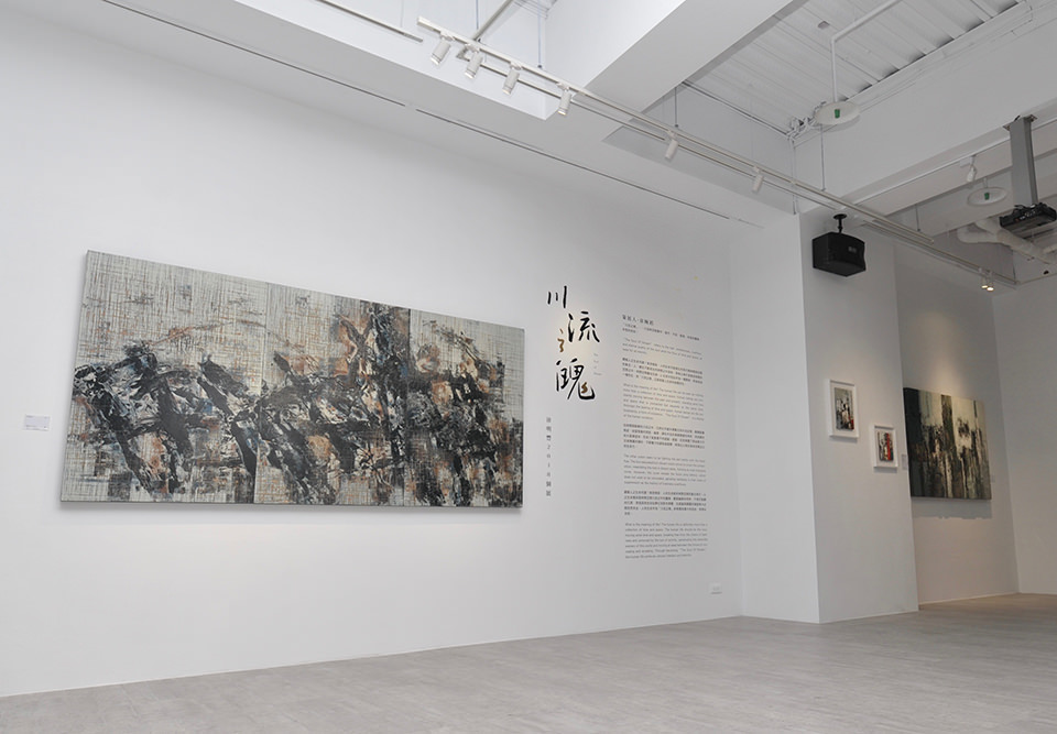 此次2018年徐明豐個展,策展特將展題訂為「川流之魄」,原因是從展出的作品中,我們看到了徐明豐已然跳脫版畫傳統的框架、也越出版畫既定的界限。他在同一幅畫作中融入了各種類別的材料、結合了各種形式的技法,在繁複的創作過程之間,逐漸沉澱累積,繼而畫面蘊生出厚實深邃的精神內涵。 「川流之魄」──川流時空動靜中,凝佇、不安、傾洩,永恆的靈魄,永恆的自由!