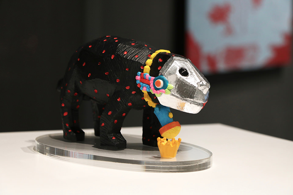 「花園裡的線索」是此次呂英菖、張騰遠聯展的展覽名稱,同時也是兩位藝術家共同創作的一件作品的名稱。作品〈花園裡的線索〉於縹緲深邃的宇宙之中花團錦簇,畫面正中緊密相連的是被以數學無限符號箍繞聚集的人們,這些化約為簡單線條的人形所代表的可以是呂英菖、張騰遠兩位藝術家、可以分別是其中一位藝術家與其家人朋友、也可以泛指因緣際會甚至僅僅擦肩而過的某些人,人與人的相遇乃至相聚在生命的輪迴循環之中竟是如此微妙。人之生命於浩瀚宇宙猶如曇花一現,生時嬌豔燦爛,轉瞬已然凋謝枯萎,但卻非消失為空無。生命的曾經存在本身,就已經為曾經相遇相聚的家人朋友乃至片刻眼神交流的陌生人的內心,埋藏下一顆等待萌芽的精神種子,這顆精神種子在無限輪迴過程中蓄積能量,待得緣起、待得時機成熟又再花開,且更加燦爛。這是生命所顯現的美好,這是生命的終極意義,是生命花園裡等待發覺的線索。 呂英菖深諳其中真義並將其表現在創作之中,平面化的裝飾性線條,妝點出朵朵生命之花競賽似地花開,爭奇鬥艷而賞心悅目。張騰遠則以濃妝塗抹,重彩轟擊,為花開荼靡後的生命提出質疑和反思。兩位藝術家關懷生命、關懷生命存在所處的環境、關懷人與人之間真切來往的交流,他們於展覽之中、於作品之中所佈下的線索,你找到了嗎?
