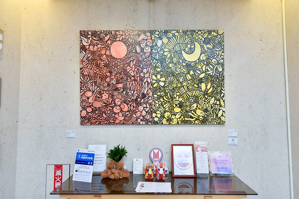 大地回暖花香滿盈,聞到春天氣息了嗎?自四月一日起至七月一日,日月千禧酒店與大雋藝術攜手推出台灣當代藝術家呂英菖個展《MAGIC COIN—尋找心中的許願池》,作為首度於指標性五星級酒店登場,本次發表除了帶來近年來代表繪畫作品,更特別打造了「許願池」裝置作品,兒時面對那偌大的許願池,將心中願望透過口袋裡的一元銅板投注池內,相信是大家共有的記憶,這枚硬幣彷彿充滿著魔力,意念在此匯集出一股巨大力量,希望透過這個概念,讓所有來看展覽的人,為自己帶來一份希望與期許。藝術家畫作中常見如「許願池」、「花園」、「森林」、「魔法石」等視覺符號,作為其重點象徵元素,皆體現他對家人的珍視愛意及生活經驗積累的思想智慧,呈現出色彩豐沛、童趣寓言般的鮮明風格,每一件畫作就像是他的日記一般,不僅映照他自身的狀態,更多是平衡滿溢的情感。在充滿意外與驚喜的生活裡,畫布空間是任他掏挖、填滿的一方天地,讚頌生命旅途中發現的所有美麗,期許在春日時節裡,帶給駐留的人們別開生面的難忘回憶!